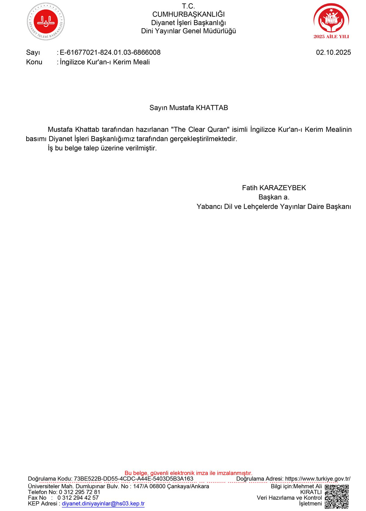 الدكتور مصطفى خطاب مصري-كندي له باع طويل في الترجمات الإسلامية، لا سيما ترجمة القرآن الكريم حيث شارك في أول ترجمة لصلاة التراويح على الهواء مباشرة من المسجد الحرام بمكة والمسجد النبوي بالمدينة بين عامي 2002-2005م. أتم المترجم حفظ القرآن الكريم في المرحلة الابتدائية وحصل لاحقًا على إجازة القراءة والإقراء برواية حفص عن عاصم بالسند المتصل إلى النبي صلى الله عليه وسلم. وقد التحق بالأزهر الشريف منذ السابعة من عمره وحتى حصوله على الليسانس، والماجستير، والدكتوراة من قسم الدراسات الإسلامية باللغة الإنجليزية، كلية اللغات والترجمة، جامعة الأزهر بامتياز مع مرتبة الشرف الأولى، وعمل بالتدريس في نفس القسم منذ 2003م، كما عمل إمامًا في الولايات المتحدة وكندا منذ عام 2007م، وخبيرًا لحوار الأديان بهيئة فولبرايت، وعضوًا بمجلس الأئمة الكندي، ومحاضرًا في جامعة كليمسون بولاية ساوث كارولينا الأمريكية، وواعظًا دينيًا بجامعة بروك بولاية أونتاريو الكندية. ومن مؤلفاته كتاب “جماعة أمة الإسلام في الولايات المتحدة” وكتاب “صورة الإسلام والمسلمين في الإعلام الأمريكي بعد 11 سبتمبر (فوكس نيوز نموذجًا)”، كما أسهم في كتابة “موسوعة التاريخ الإسلامي في أمريكا”. وتضم مؤلفاته الحديثة: قاموس القرآن، وترجمة القرآن المُبين المصورة للأطفال، وقصة للشباب بعنوان “شُكران: الفتى الشكور”